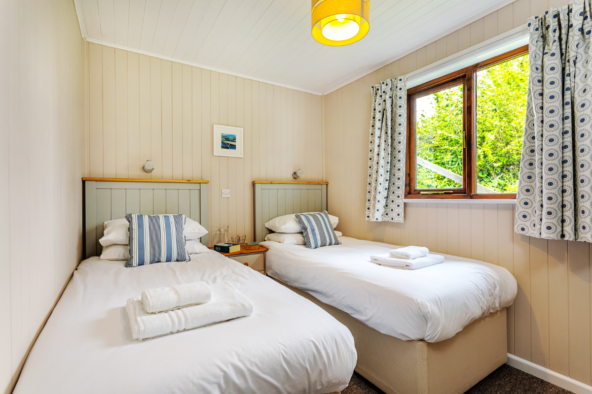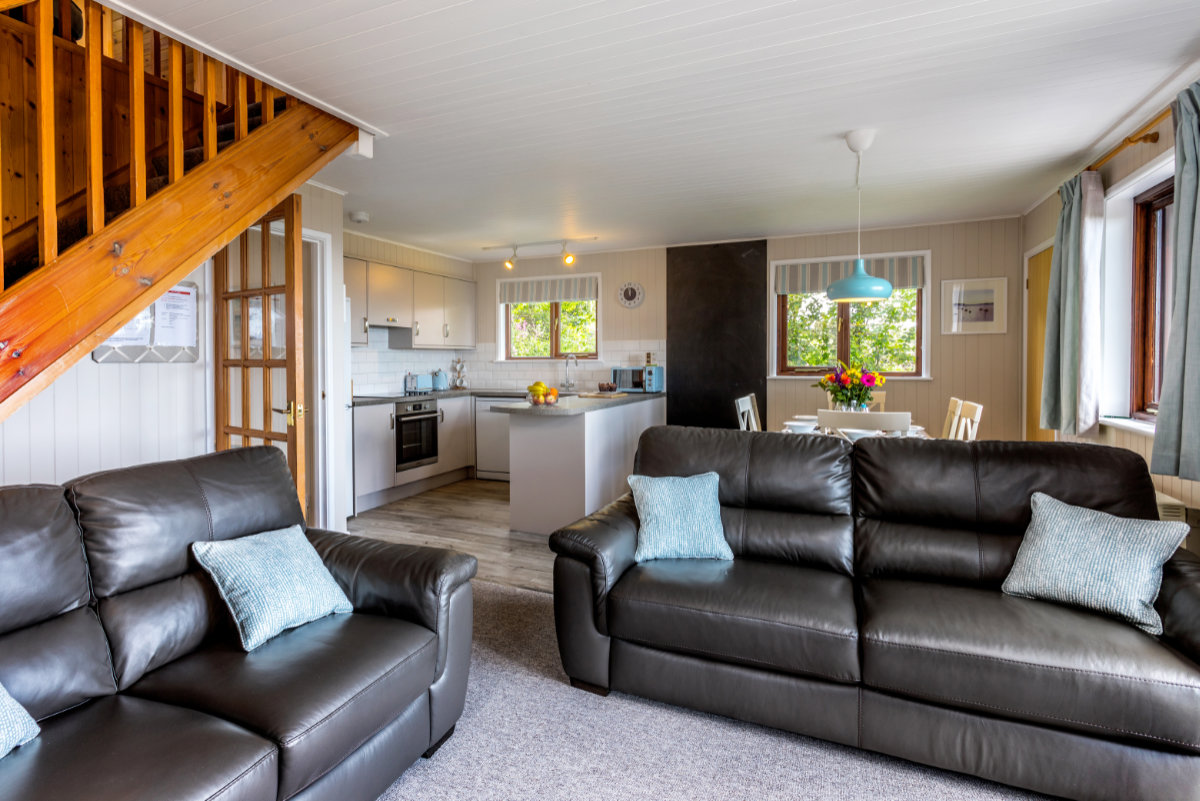Lodge E19 – Lapwing is located on the South Terrace with views across the fields and down towards Towan Beach. Refurbished in 2020 with a master king bedroom and balcony along with landing and bathroom on the first floor. A further 2 twin bedrooms and a family bathroom are located on the ground floor.