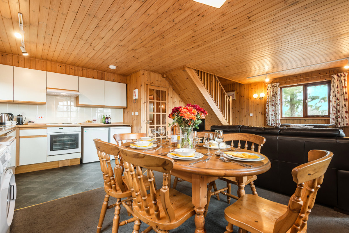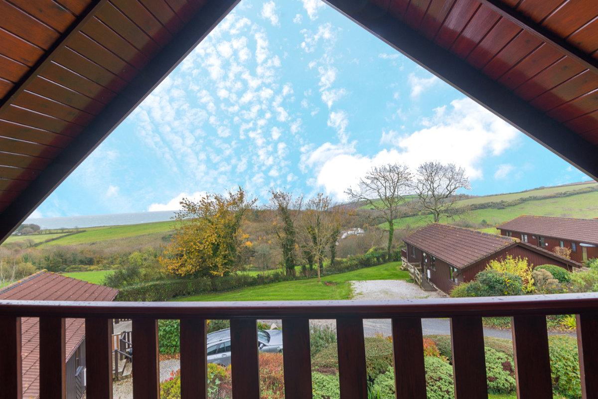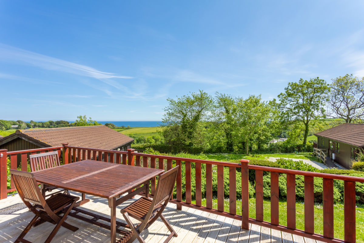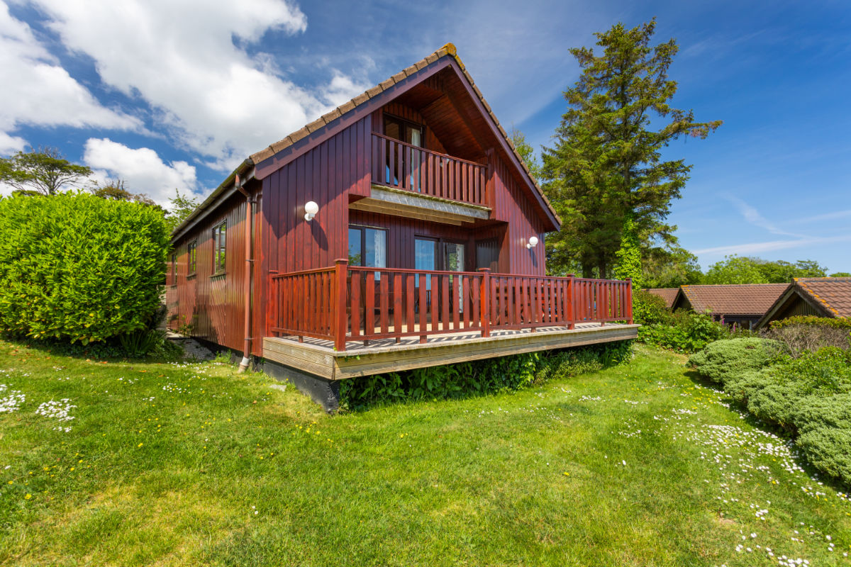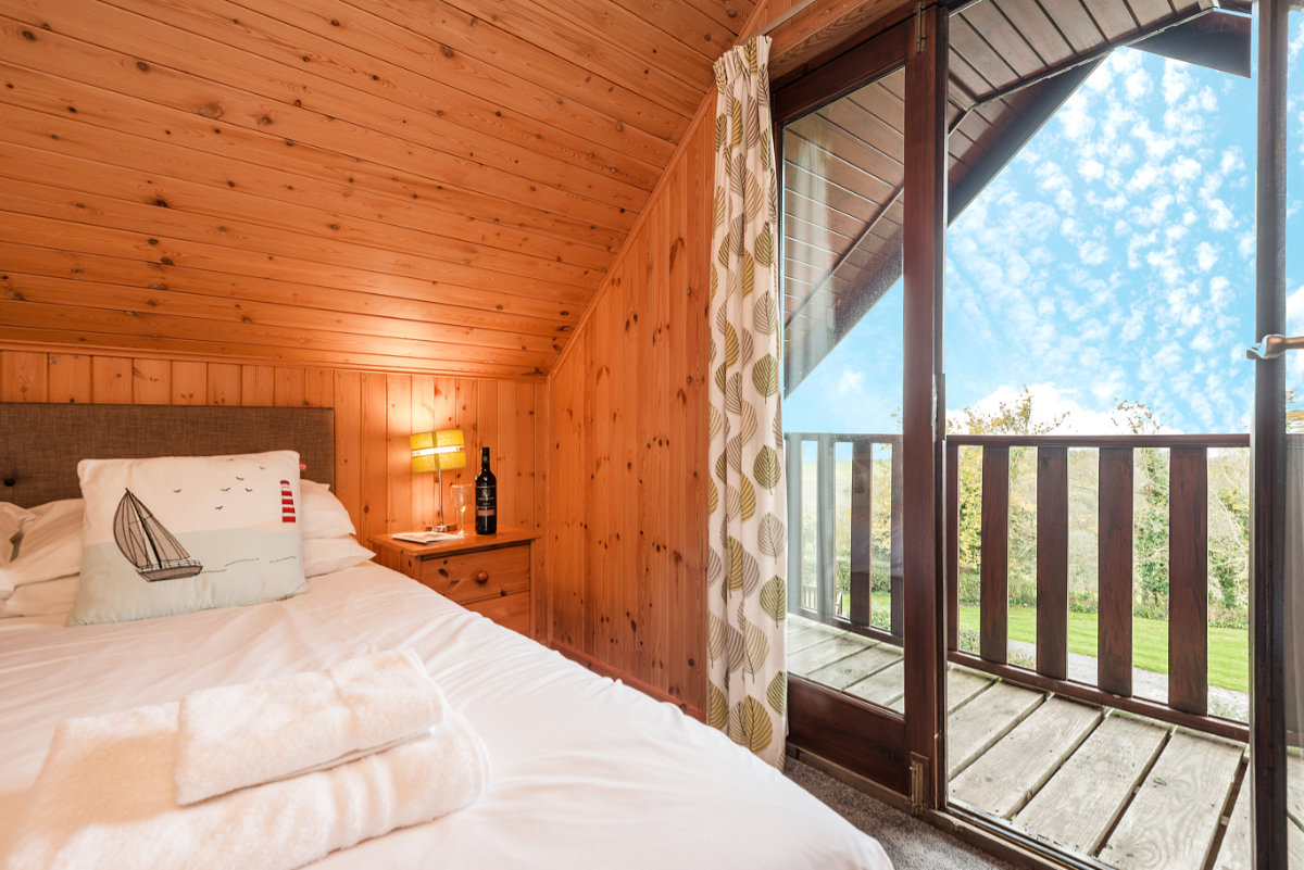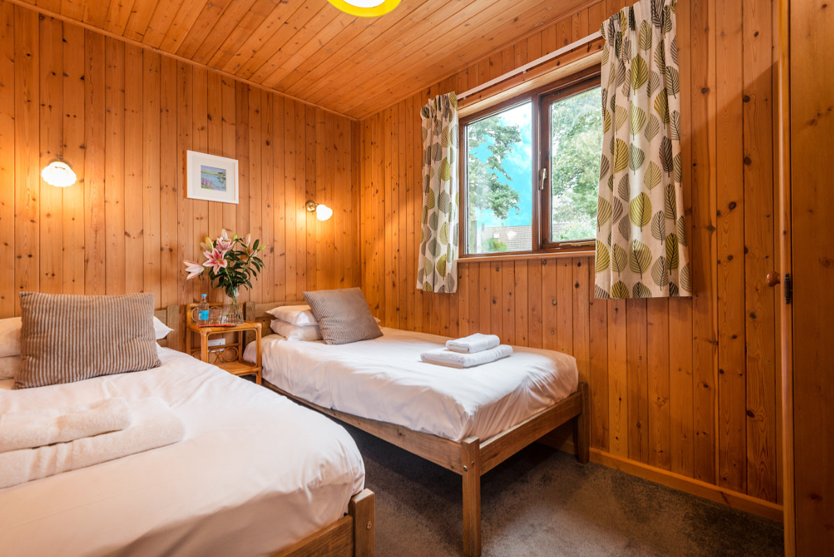 Lodge E20 – Buzzard is a 2 storey lodge located on the South Terrace. It has views across the fields down towards Towan Beach, particularly from the upstairs balcony. Bedrooms: 1 x King and 2 x Twin.